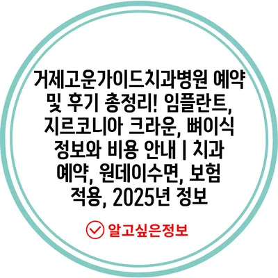 거제고운가이드치과병원 예약 및 후기 총정리! 임플란트, 지르코니아 크라운, 뼈이식 정보와 비용 안내 | 치과 예약, 원데이수면, 보험 적용, 2025년 정보