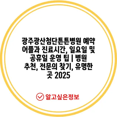 광주광산첨단튼튼병원 예약 어플과 진료시간, 일요일 및 공휴일 운영 팁 | 병원 추천, 전문의 찾기, 유명한 곳 2025