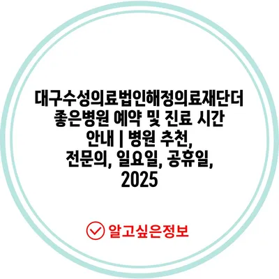 대구수성의료법인해정의료재단더좋은병원 예약 및 진료 시간 안내 | 병원 추천, 전문의, 일요일, 공휴일, 2025