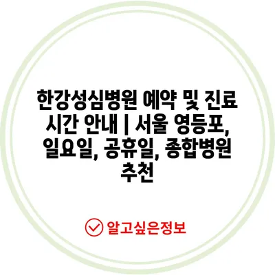 한강성심병원 예약 및 진료 시간 안내 | 서울 영등포, 일요일, 공휴일, 종합병원 추천