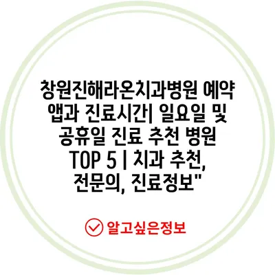 창원진해라온치과병원 예약 앱과 진료시간| 일요일 및 공휴일 진료 추천 병원 TOP 5 | 치과 추천, 전문의, 진료정보”