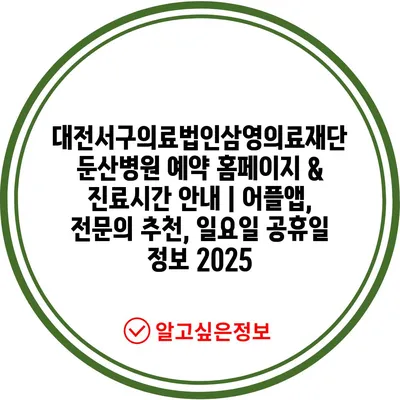 대전서구의료법인삼영의료재단 둔산병원 예약 홈페이지 & 진료시간 안내 | 어플앱, 전문의 추천, 일요일 공휴일 정보 2025