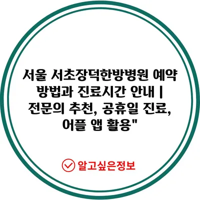 서울 서초장덕한방병원 예약 방법과 진료시간 안내 | 전문의 추천, 공휴일 진료, 어플 앱 활용”