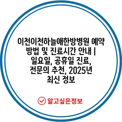이천이천하늘애한방병원 예약 방법 및 진료시간 안내 | 일요일, 공휴일 진료, 전문의 추천, 2025년 최신 정보