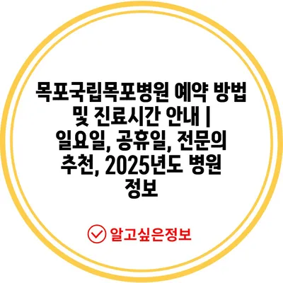 목포국립목포병원 예약 방법 및 진료시간 안내 | 일요일, 공휴일, 전문의 추천, 2025년도 병원 정보