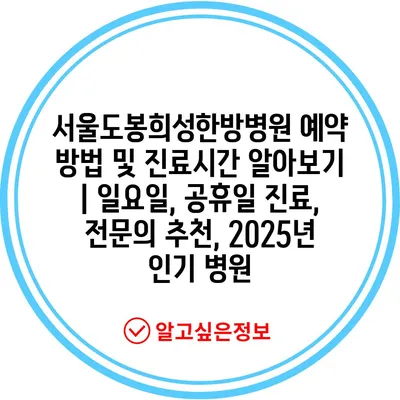 서울도봉희성한방병원 예약 방법 및 진료시간 알아보기 | 일요일, 공휴일 진료, 전문의 추천, 2025년 인기 병원