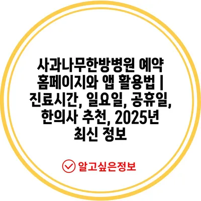 사과나무한방병원 예약 홈페이지와 앱 활용법 | 진료시간, 일요일, 공휴일, 한의사 추천, 2025년 최신 정보