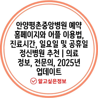 안양평촌중앙병원 예약 홈페이지와 어플 이용법, 진료시간, 일요일 및 공휴일 정신병원 추천 | 의료 정보, 전문의, 2025년 업데이트