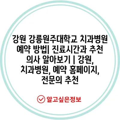 강원 강릉원주대학교 치과병원 예약 방법| 진료시간과 추천 의사 알아보기 | 강원, 치과병원, 예약 홈페이지, 전문의 추천