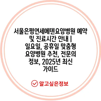 서울은평연세에덴요양병원 예약 및 진료시간 안내 | 일요일, 공휴일 맞춤형 요양병원 추천, 전문의 정보, 2025년 최신 가이드