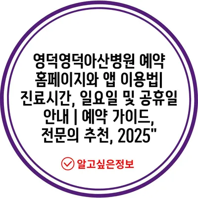영덕영덕아산병원 예약 홈페이지와 앱 이용법| 진료시간, 일요일 및 공휴일 안내 | 예약 가이드, 전문의 추천, 2025″