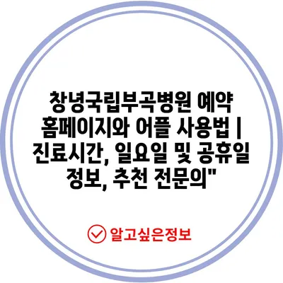 창녕국립부곡병원 예약 홈페이지와 어플 사용법 | 진료시간, 일요일 및 공휴일 정보, 추천 전문의”