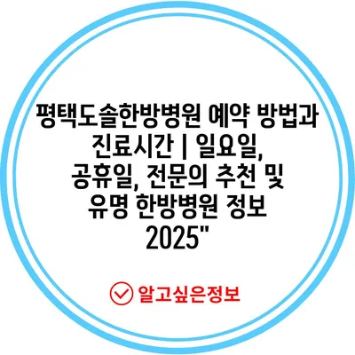 평택도솔한방병원 예약 방법과 진료시간 | 일요일, 공휴일, 전문의 추천 및 유명 한방병원 정보 2025″