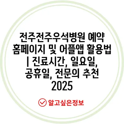 전주전주우석병원 예약 홈페이지 및 어플앱 활용법 | 진료시간, 일요일, 공휴일, 전문의 추천 2025