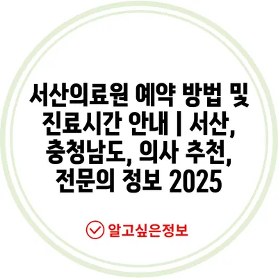 서산의료원 예약 방법 및 진료시간 안내 | 서산, 충청남도, 의사 추천, 전문의 정보 2025