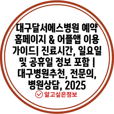 대구달서에스병원 예약 홈페이지 & 어플앱 이용 가이드| 진료시간, 일요일 및 공휴일 정보 포함 | 대구병원추천, 전문의, 병원상담, 2025