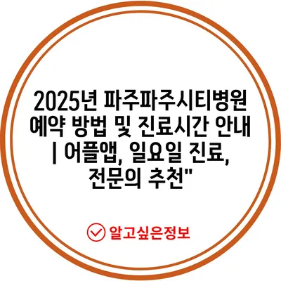 2025년 파주파주시티병원 예약 방법 및 진료시간 안내 | 어플앱, 일요일 진료, 전문의 추천”
