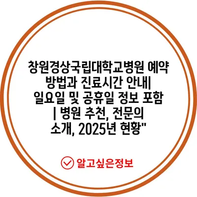 창원경상국립대학교병원 예약 방법과 진료시간 안내| 일요일 및 공휴일 정보 포함 | 병원 추천, 전문의 소개, 2025년 현황”