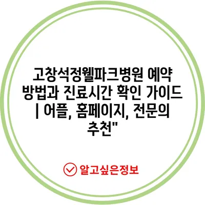 고창석정웰파크병원 예약 방법과 진료시간 확인 가이드 | 어플, 홈페이지, 전문의 추천”