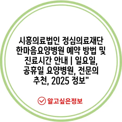 시흥의료법인 정심의료재단 한마음요양병원 예약 방법 및 진료시간 안내 | 일요일, 공휴일 요양병원, 전문의 추천, 2025 정보”