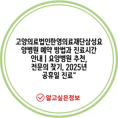 고양의료법인한영의료재단삼성요양병원 예약 방법과 진료시간 안내 | 요양병원 추천, 전문의 찾기, 2025년 공휴일 진료”