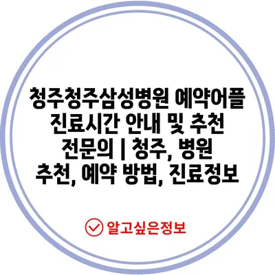 청주청주삼성병원 예약어플 진료시간 안내 및 추천 전문의 | 청주, 병원 추천, 예약 방법, 진료정보