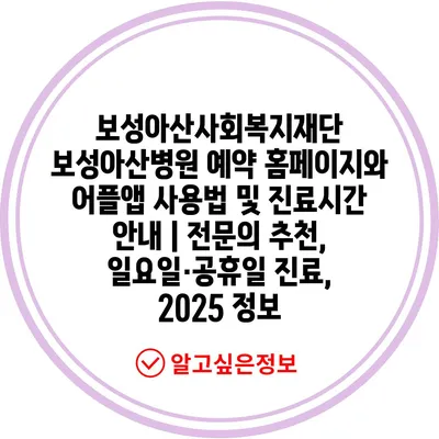 보성아산사회복지재단 보성아산병원 예약 홈페이지와 어플앱 사용법 및 진료시간 안내 | 전문의 추천, 일요일·공휴일 진료, 2025 정보