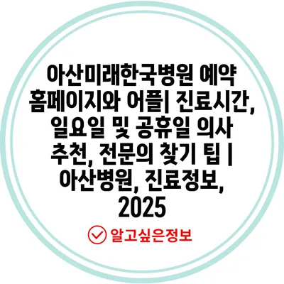 아산미래한국병원 예약 홈페이지와 어플| 진료시간, 일요일 및 공휴일 의사 추천, 전문의 찾기 팁 | 아산병원, 진료정보, 2025