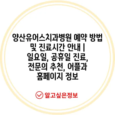 양산유어스치과병원 예약 방법 및 진료시간 안내 | 일요일, 공휴일 진료, 전문의 추천, 어플과 홈페이지 정보