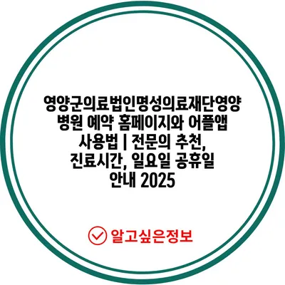 영양군의료법인명성의료재단영양병원 예약 홈페이지와 어플앱 사용법 | 전문의 추천, 진료시간, 일요일 공휴일 안내 2025