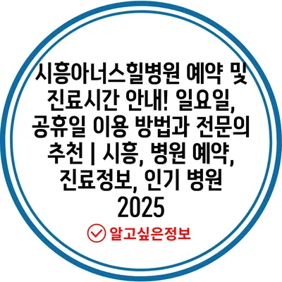 시흥아너스힐병원 예약 및 진료시간 안내! 일요일, 공휴일 이용 방법과 전문의 추천 | 시흥, 병원 예약, 진료정보, 인기 병원 2025