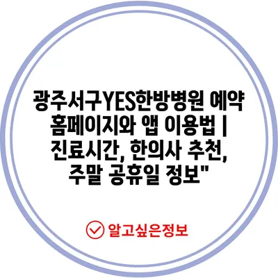 광주서구YES한방병원 예약 홈페이지와 앱 이용법 | 진료시간, 한의사 추천, 주말 공휴일 정보”