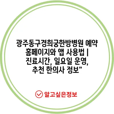 광주동구경희궁한방병원 예약 홈페이지와 앱 사용법 | 진료시간, 일요일 운영, 추천 한의사 정보”