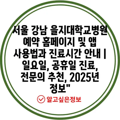 서울 강남 을지대학교병원 예약 홈페이지 및 앱 사용법과 진료시간 안내 | 일요일, 공휴일 진료, 전문의 추천, 2025년 정보”
