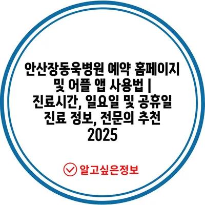안산장동욱병원 예약 홈페이지 및 어플 앱 사용법 | 진료시간, 일요일 및 공휴일 진료 정보, 전문의 추천 2025
