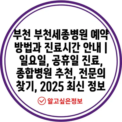 부천 부천세종병원 예약 방법과 진료시간 안내 | 일요일, 공휴일 진료, 종합병원 추천, 전문의 찾기, 2025 최신 정보