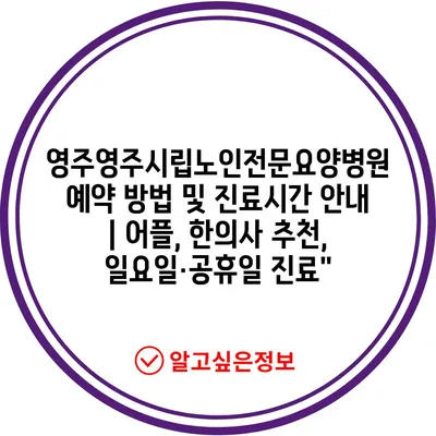 영주영주시립노인전문요양병원 예약 방법 및 진료시간 안내 | 어플, 한의사 추천, 일요일·공휴일 진료”