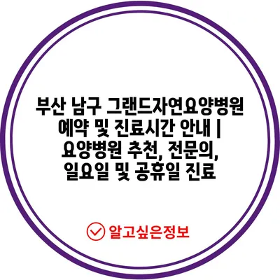 부산 남구 그랜드자연요양병원 예약 및 진료시간 안내 | 요양병원 추천, 전문의, 일요일 및 공휴일 진료