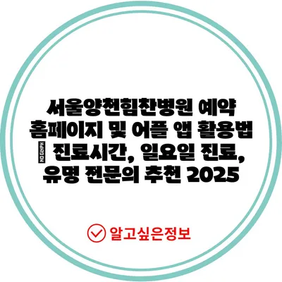 서울양천힘찬병원 예약 홈페이지 및 어플 앱 활용법 | 진료시간, 일요일 진료, 유명 전문의 추천 2025