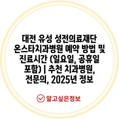 대전 유성 성전의료재단 온스타치과병원 예약 방법 및 진료시간 (일요일, 공휴일 포함) | 추천 치과병원, 전문의, 2025년 정보