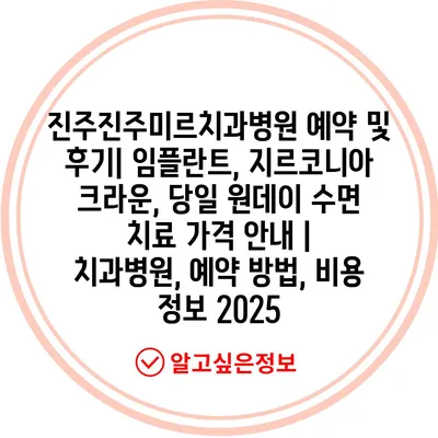 진주진주미르치과병원 예약 및 후기| 임플란트, 지르코니아 크라운, 당일 원데이 수면 치료 가격 안내 | 치과병원, 예약 방법, 비용 정보 2025