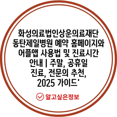 화성의료법인상운의료재단 동탄제일병원 예약 홈페이지와 어플앱 사용법 및 진료시간 안내 | 주말, 공휴일 진료, 전문의 추천, 2025 가이드’