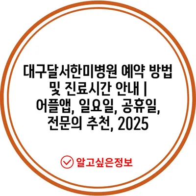 대구달서한미병원 예약 방법 및 진료시간 안내 | 어플앱, 일요일, 공휴일, 전문의 추천, 2025
