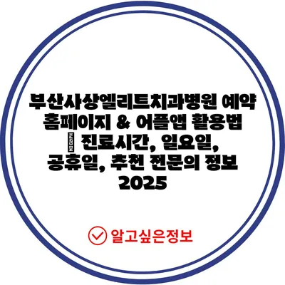 부산사상엘리트치과병원 예약 홈페이지 & 어플앱 활용법 | 진료시간, 일요일, 공휴일, 추천 전문의 정보 2025