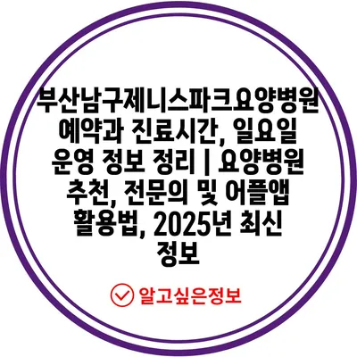 부산남구제니스파크요양병원 예약과 진료시간, 일요일 운영 정보 정리 | 요양병원 추천, 전문의 및 어플앱 활용법, 2025년 최신 정보