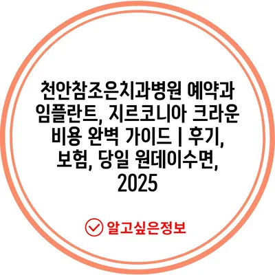 천안참조은치과병원 예약과 임플란트, 지르코니아 크라운 비용 완벽 가이드 | 후기, 보험, 당일 원데이수면, 2025